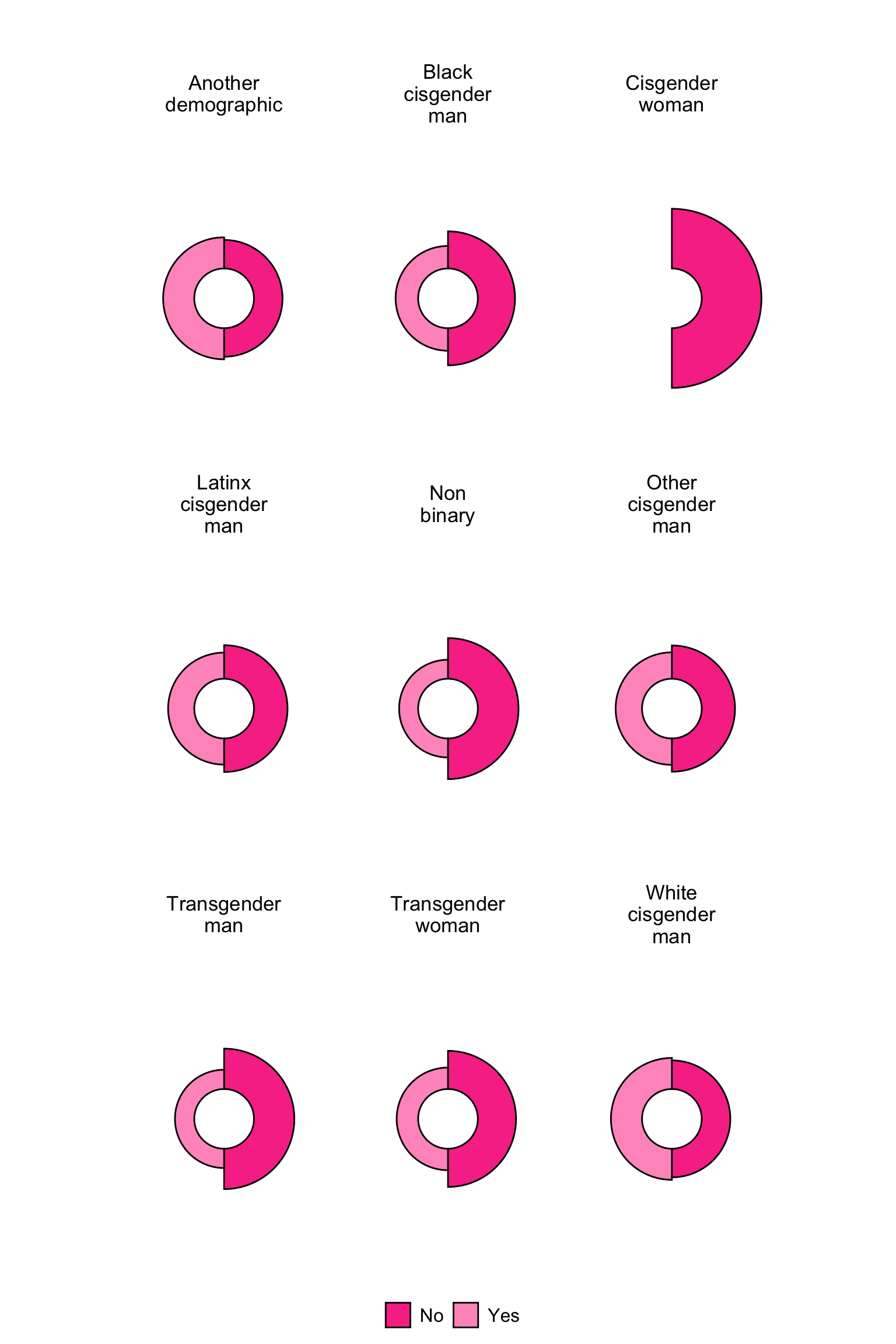 | Non binary | Latinx cisgender man | -11% (-27 to 5) |