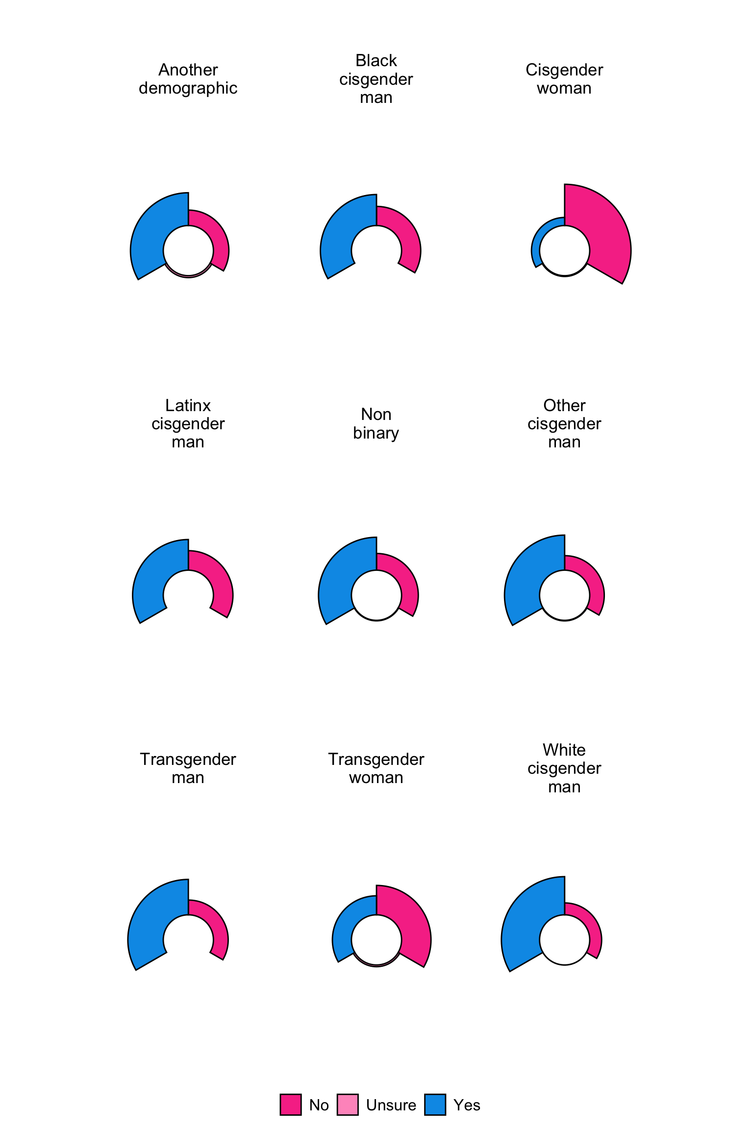 | Other cisgender man | Non binary | 2% (-16 to 23) |