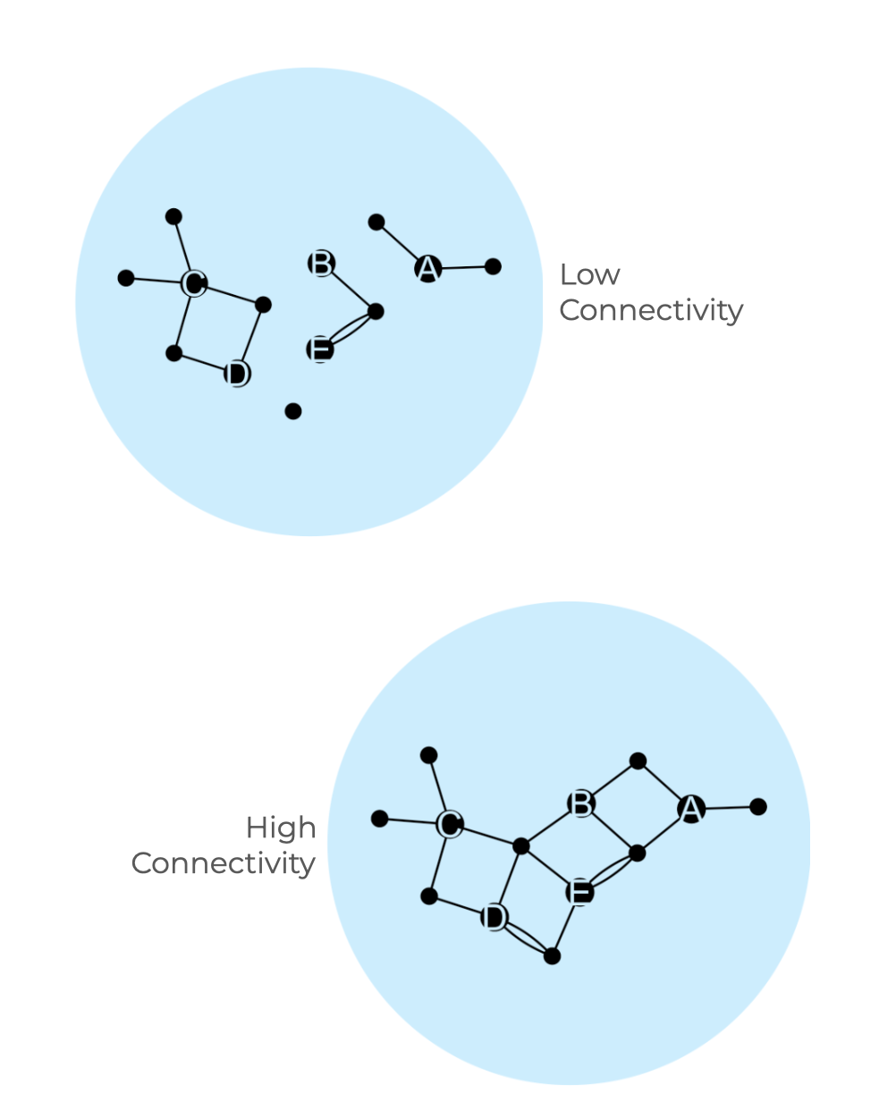 The proportion of all nodes contained in the LCC serves as a measure of how cohesively the network is connected: a larger LCC indicates greater overall connectedness among participants.