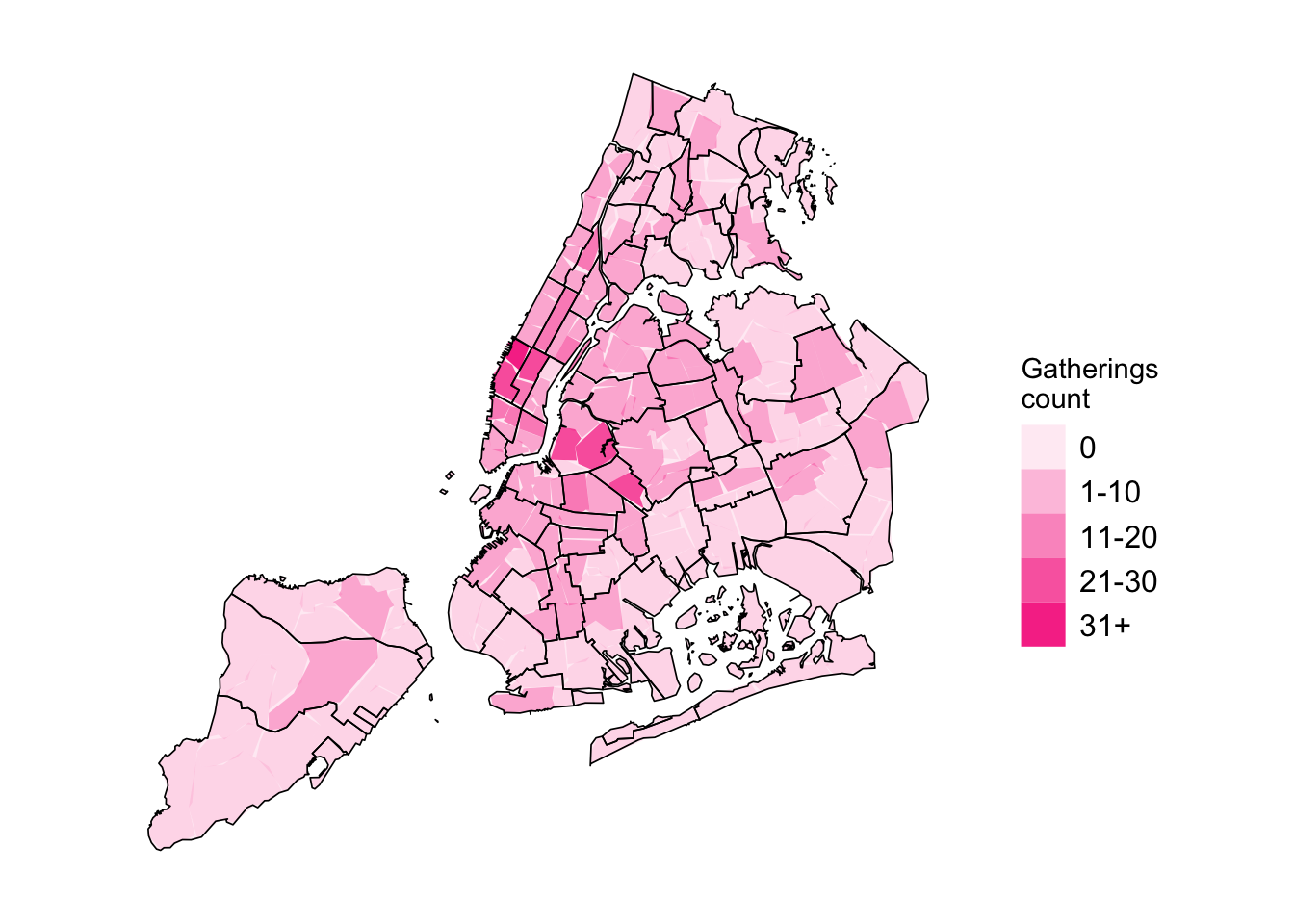 Figure 7.1: Popular neighborhoods for gatherings, MPX NYC, 2022