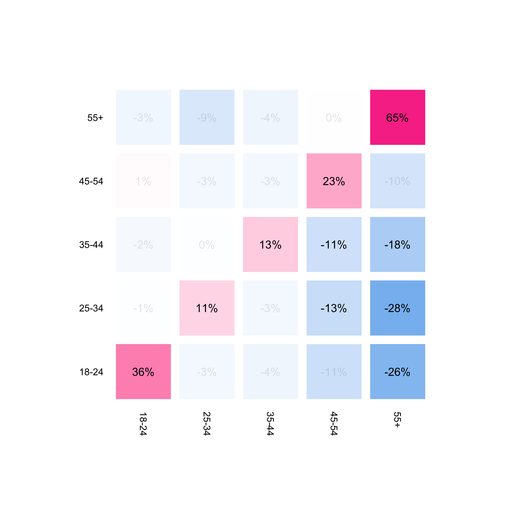| White cisgender man | Another demographic | 26% (-16 to 81) |